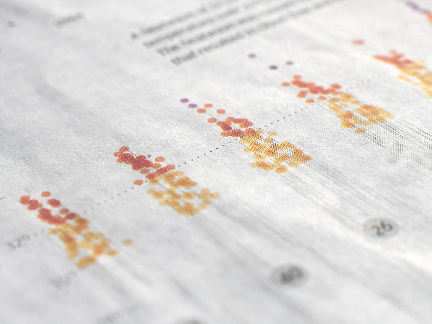 In recent years, Hong Kong's summer temperatures have risen significantly due to global warming. Instead of merely sensing the increasing heat, compiling real data provides a clearer understanding of the current situation. A line graph with dots of varying colors, representing different temperatures, illustrates the number and concentration of heat waves in Hong Kong. Additionally, notes highlight significant days and important events related to the heat waves.