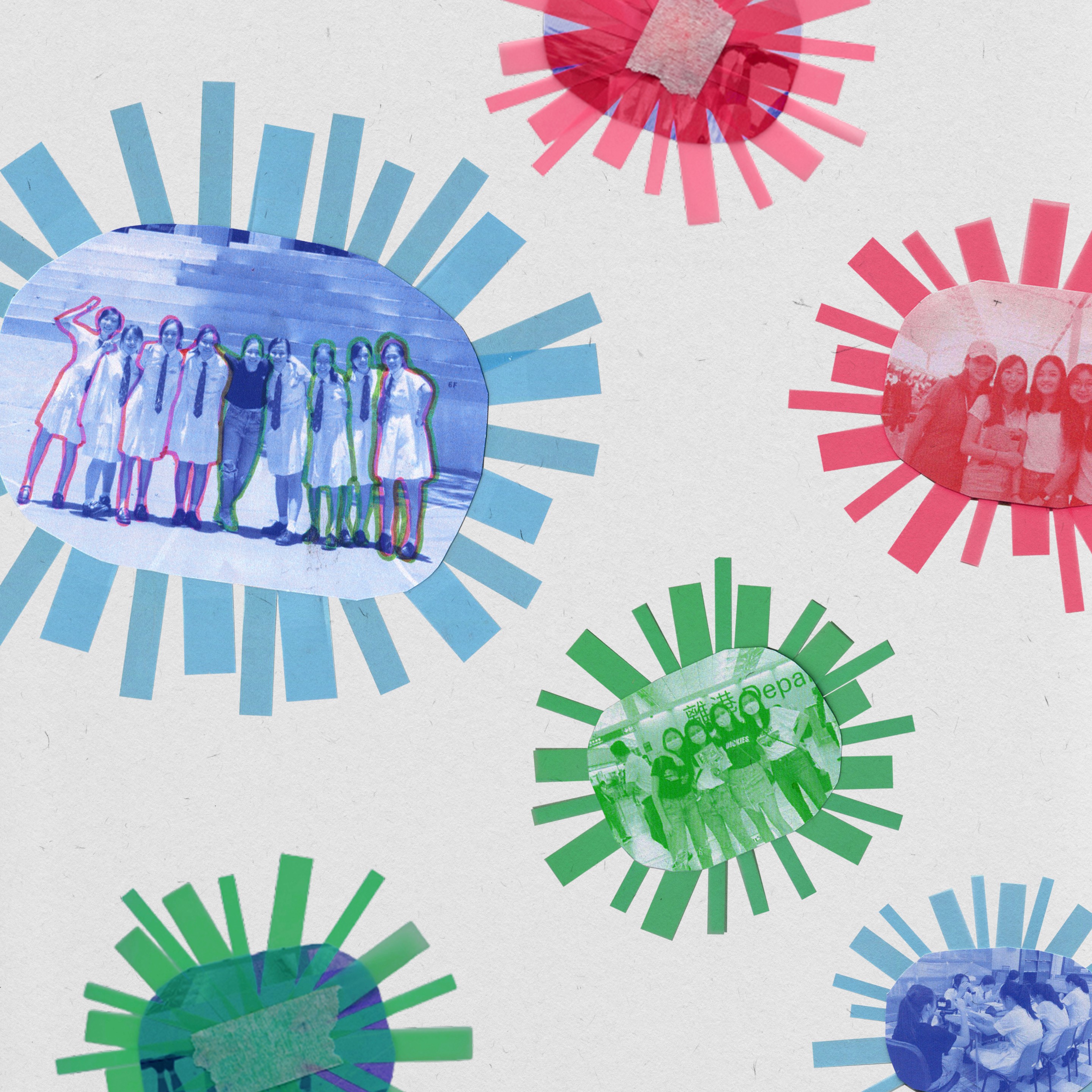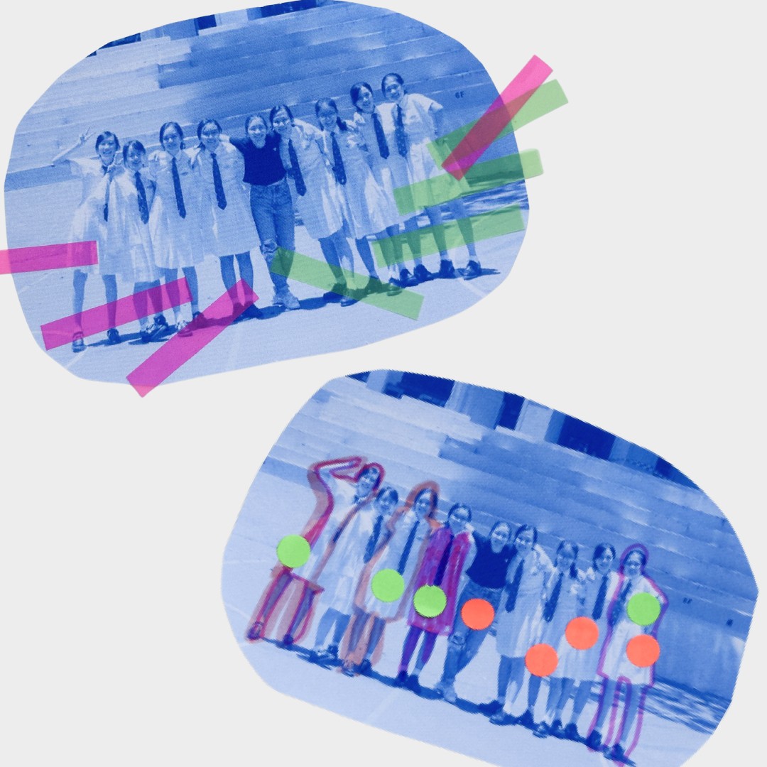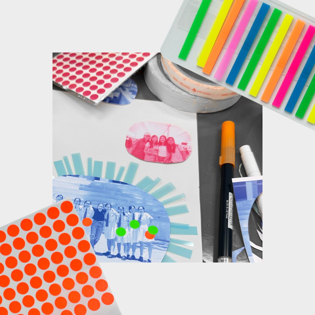 Inspired by how we used memo paper to highlight important content in high school, I arranged the memo paper around different photos to create fireworks' shapes. The fireworks formed from these highlights may be imperfect and a bit rough, but they represent youthful friendship—authentic and dazzling.
