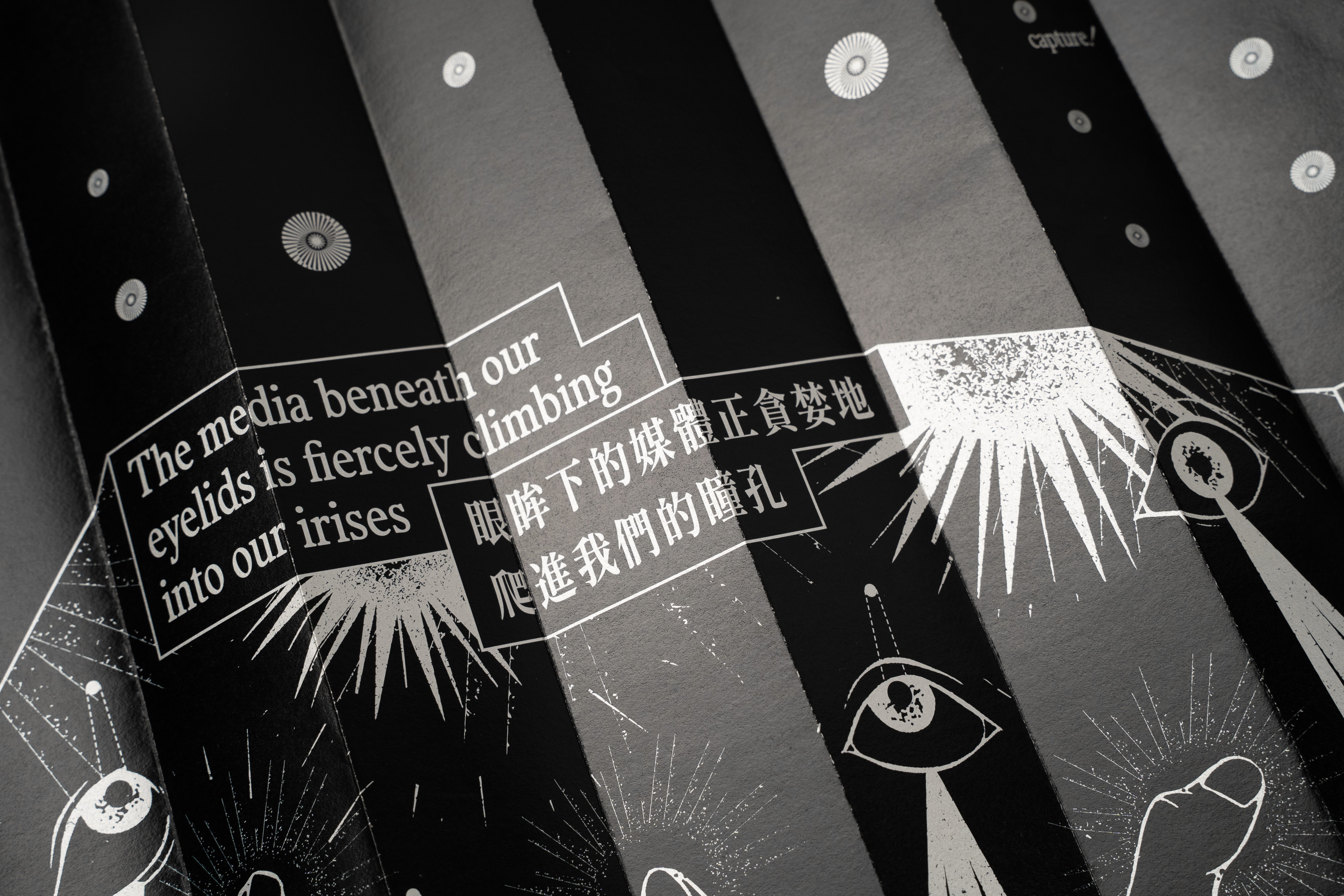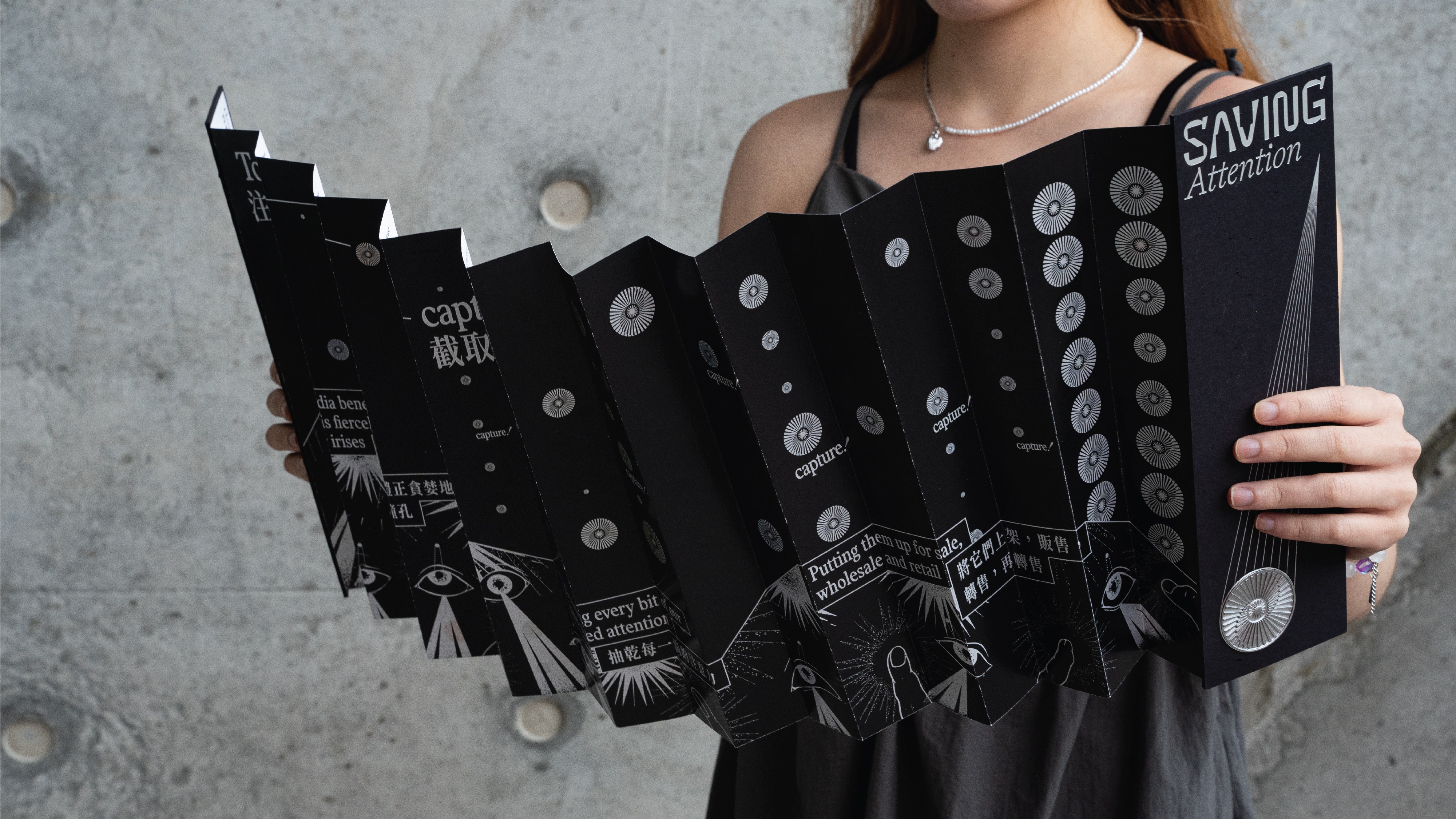 Inspired by Tobias Rose-Stockwell's insight that engagement is the currency of the attention economy, the B-side features a graphic poster illustrating how media captures attention for profit. The front cover symbolises this concept with a coin, representing "attention as currency."