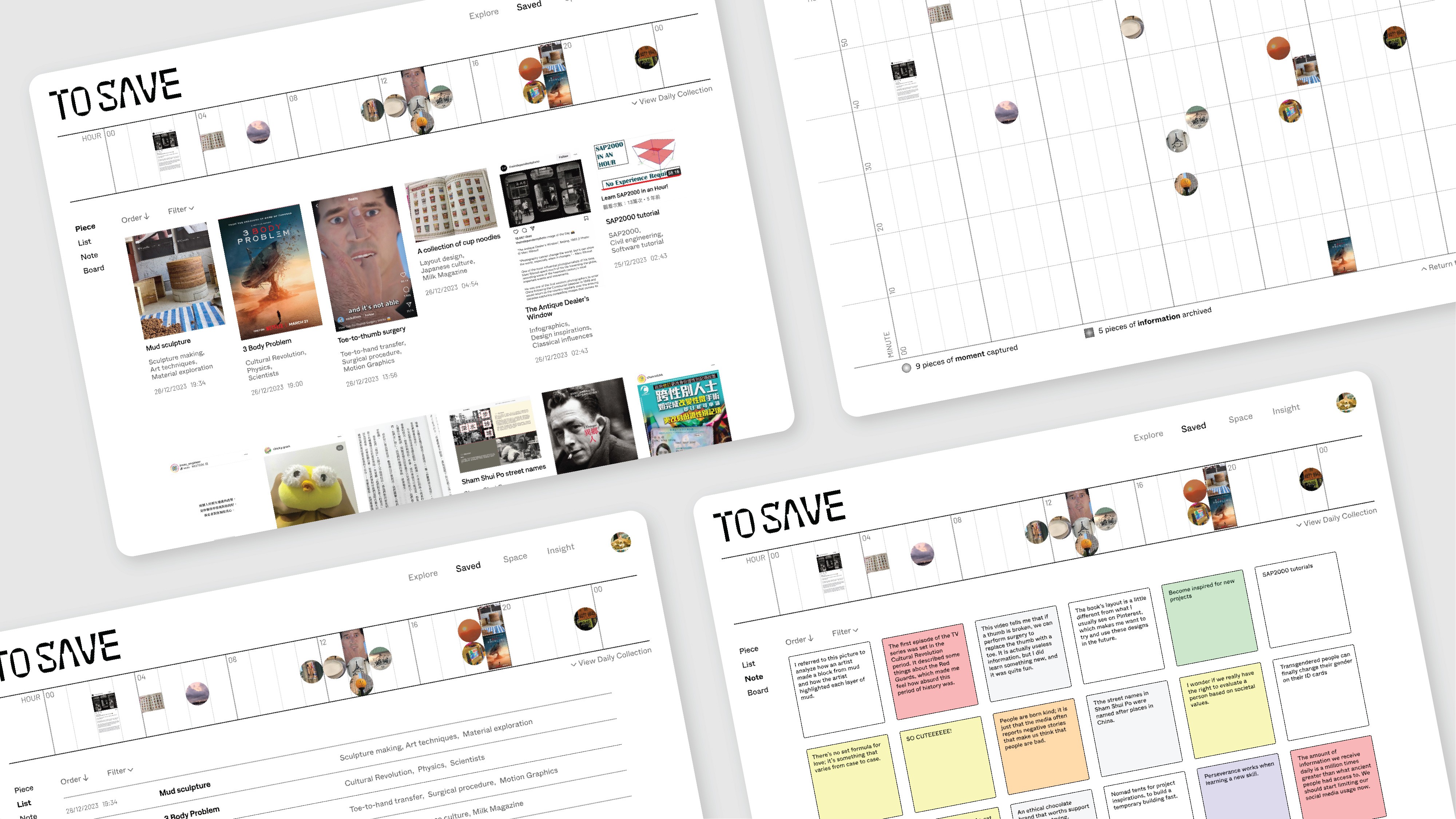 TO SAVE is an online archiving platform with a mobile plugin that introduces an alternative information consumption experience. It encourages users to preserve and share meaningful content.